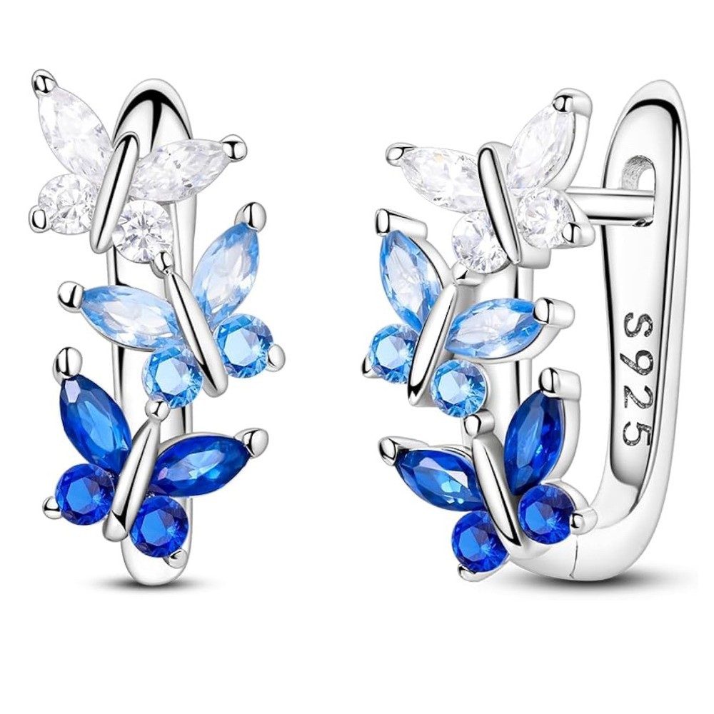 Los Aretes Mariposa Azul combinan un diseño delicado con zirconios azules de brillo intenso, creando una joya fresca y luminosa. Ideales para aportar color y elegancia sin perder sutileza.