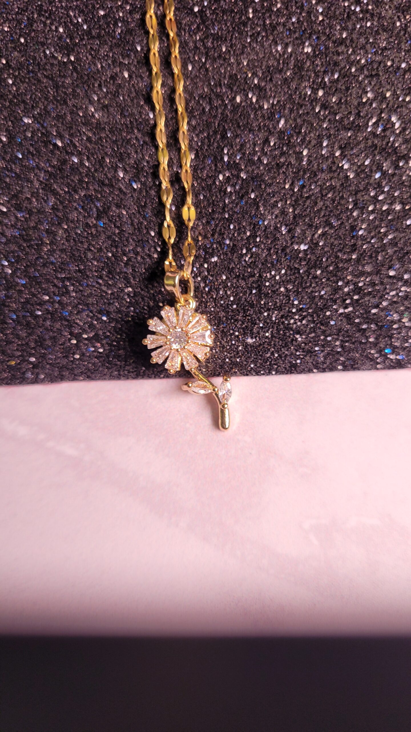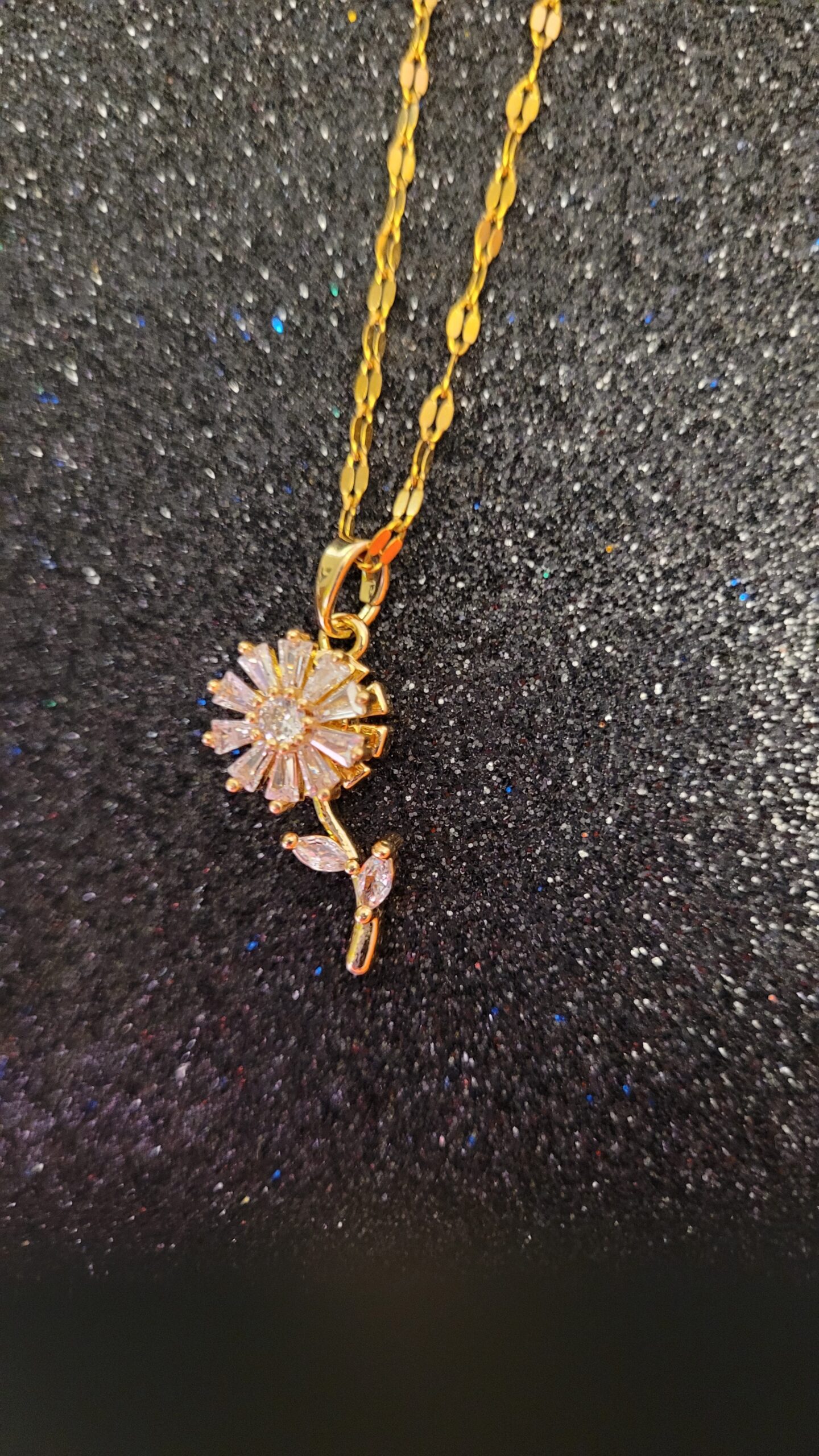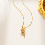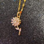 El Collar Giraflor destaca por su diseño floral giratorio con detalles brillantes que aportan movimiento y elegancia. Una pieza especial que ilumina cualquier look con un toque delicado y dinámico.