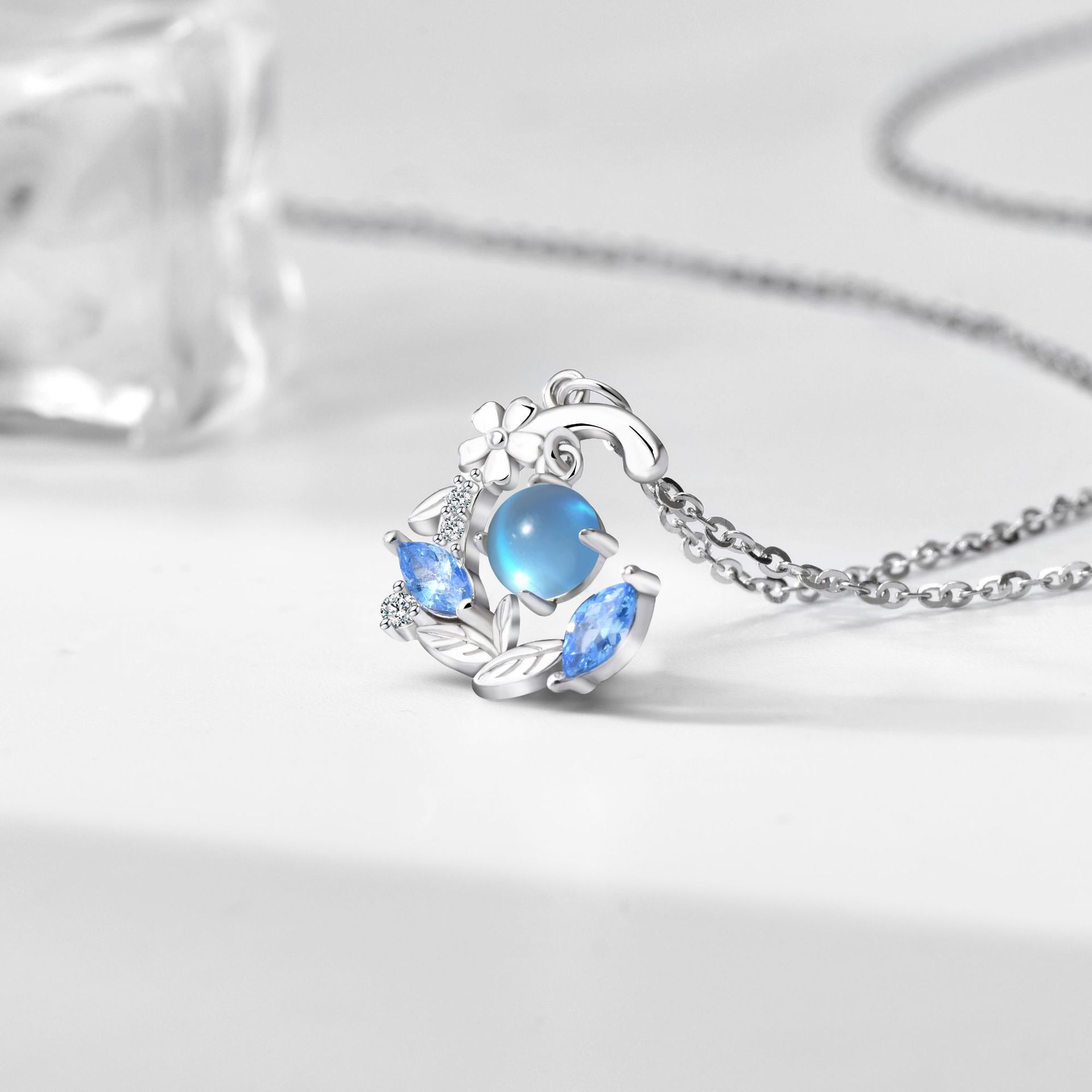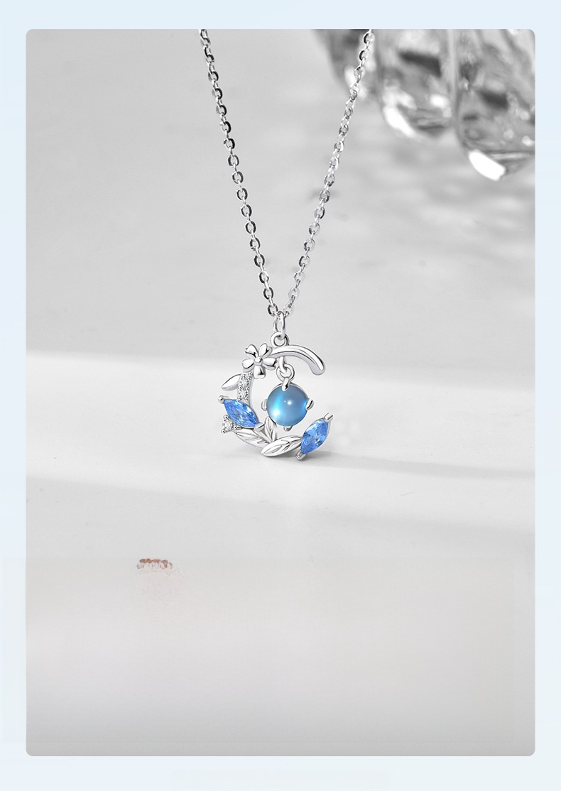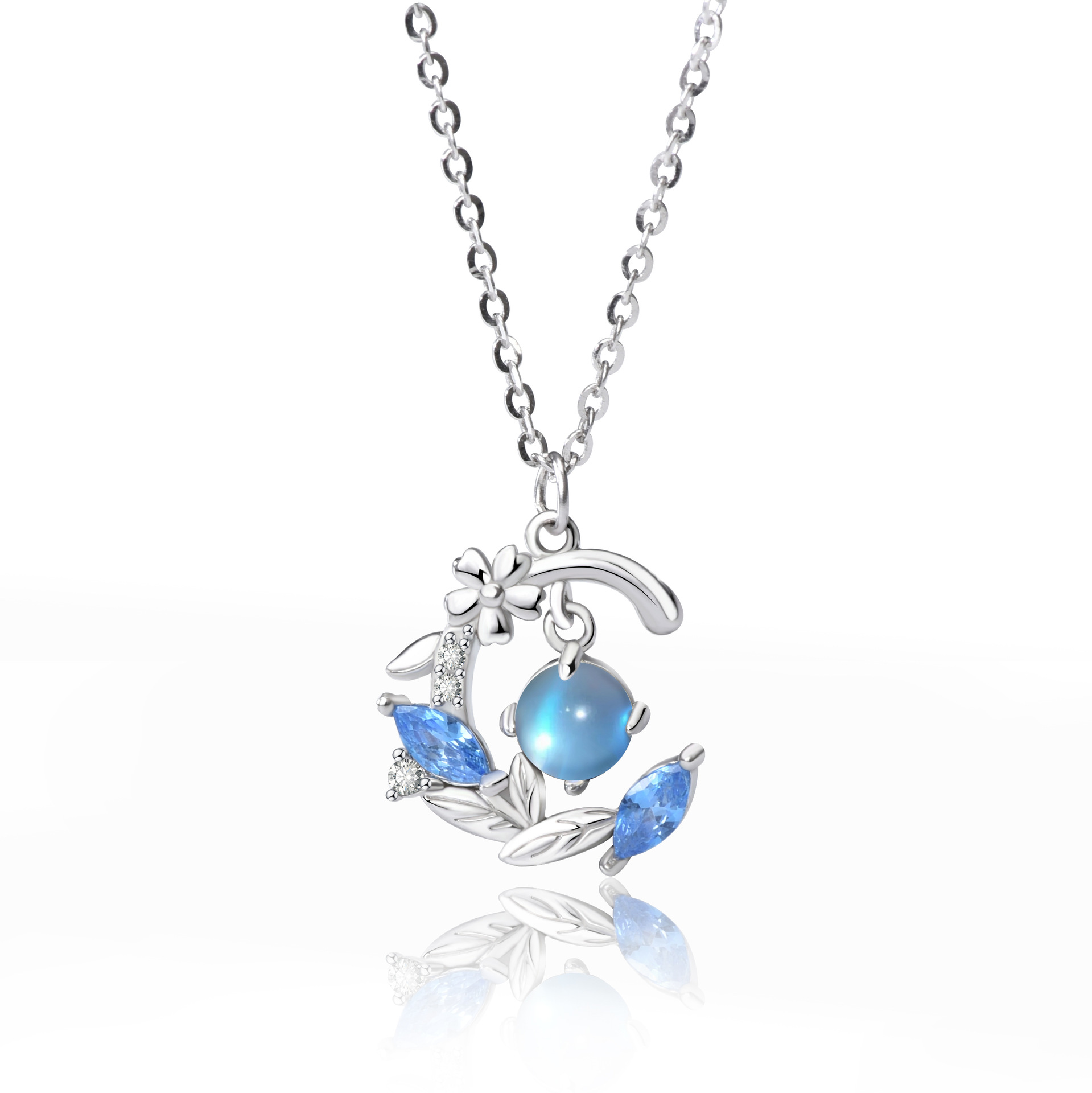 Collar de Plata S925 enchapado en Oro blanco con incrustaciones de Circonita y Piedra Luna.