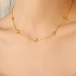 El Collar Tiny Flower resalta por su diseño floral minimalista que aporta un brillo sutil y femenino. Una pieza delicada, ideal para acompañar cualquier look con elegancia natural.