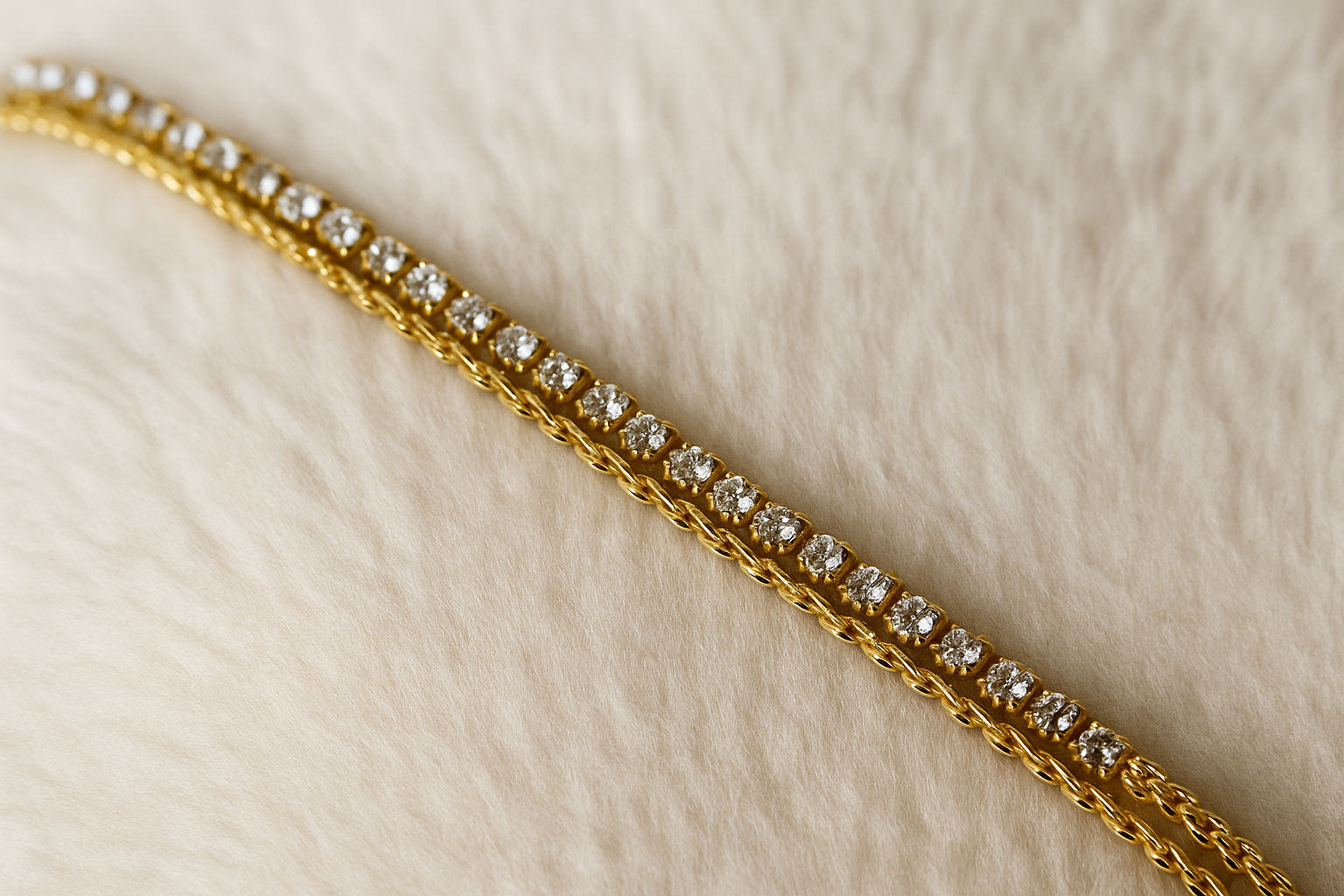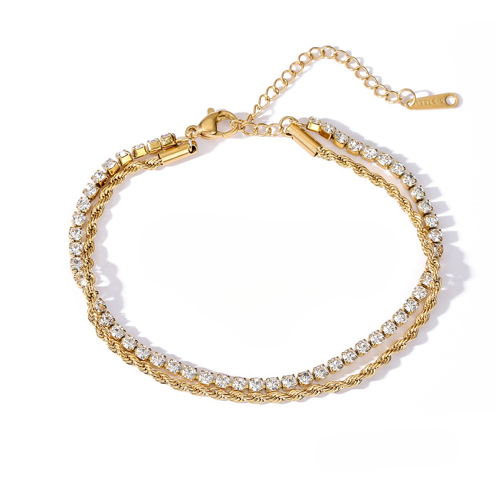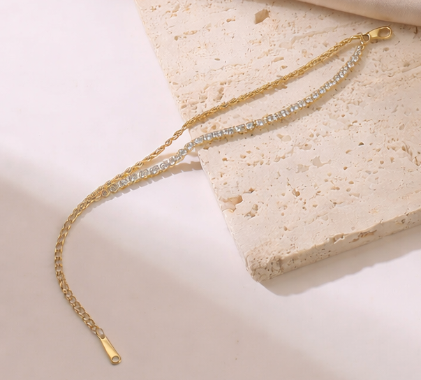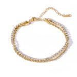 La Pulsera Tennis Chic destaca por su línea de zirconios que aporta un brillo sofisticado y atemporal. Ideal para llevar sola o combinarla con otras pulseras para un estilo más moderno.